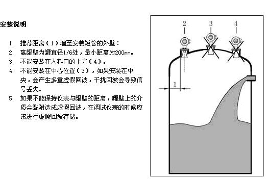 4垂直放置桿式天線,不要讓雷達(dá)束指向罐壁。